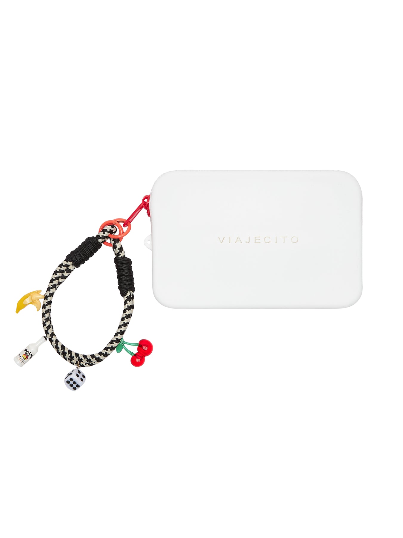 Clutch Wrist Strap Charm Set- White with Red Zip with Cherry Charm