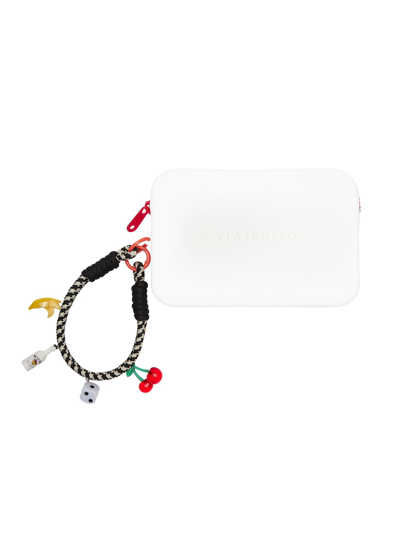 Clutch Wrist Strap Charm Set- White with Red Zip with Cherry Charm