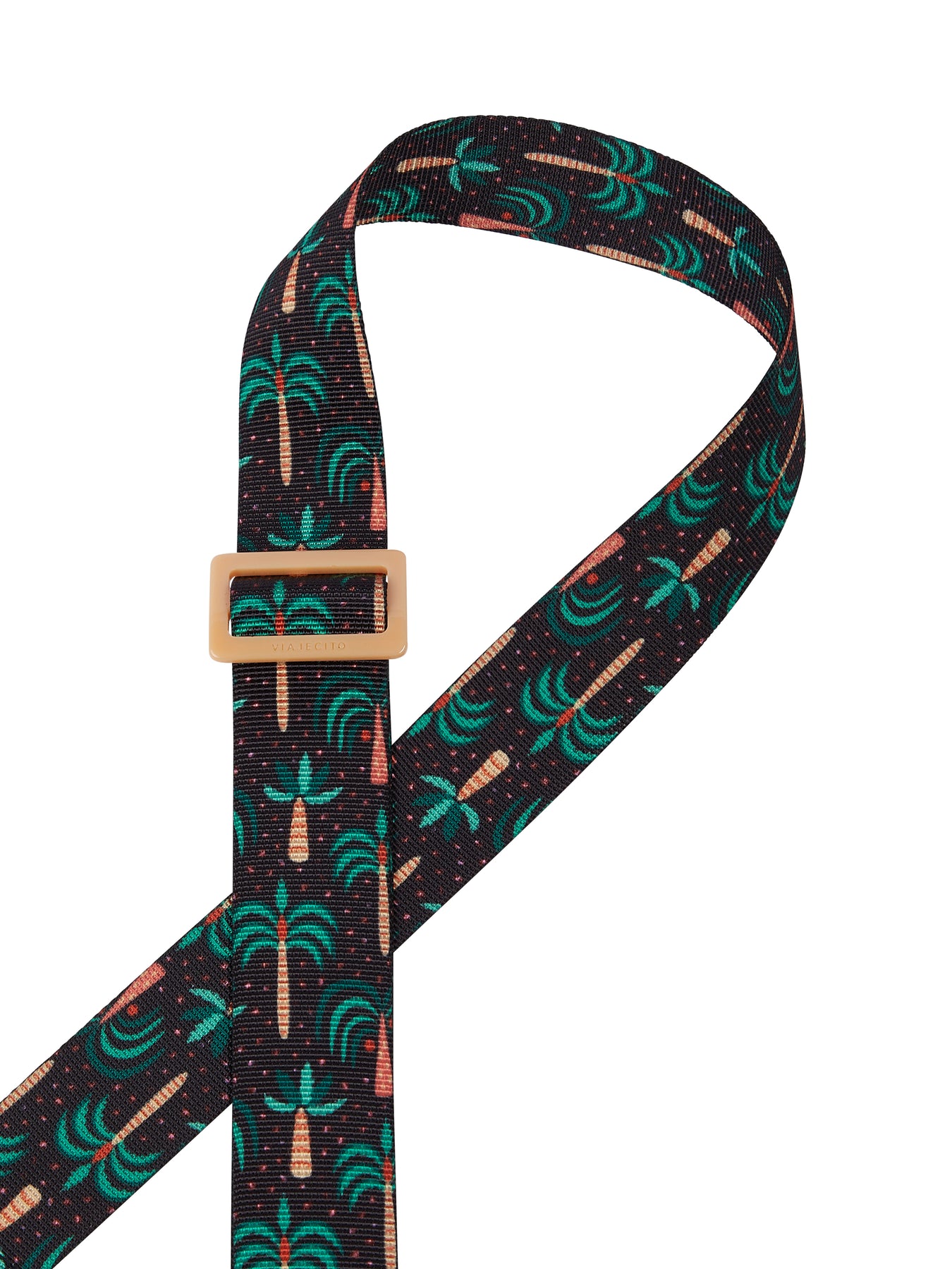 Bring a touch of island life wherever you go with our Tropical Sports Strap. Designed with playful palm prints in refreshing shades of green and coral, this strap instantly adds a fun, vacation-ready vibe to your favorite Viajecito bag.